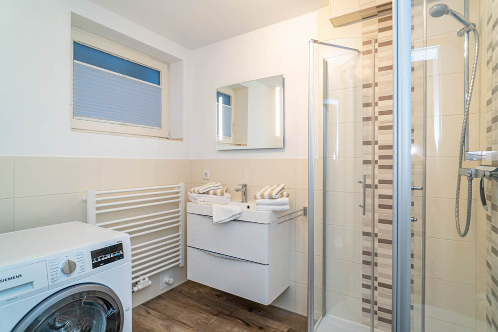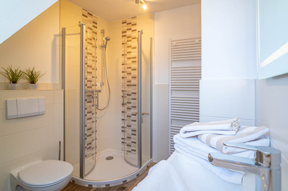 Im Erdgeschoss befindet sich ein gemütliches Wohn- und Esszimmer mit offener Küche. Vom hellen Wohnzimmer haben Sie Zutritt zur nach Süden ausgerichteten Terrasse. Im Garten befindet sich das Saunahaus. Über eine Treppe gelangen Sie in das Souterrain. Hier befindet sich ein modernes Badezimmer mit Dusche-WC, ein Flur sowie ein weiterer Raum. Im Obergeschoss existiert ein Schlafzimmer und ein vorgelagerter Südbalkon sowie ein Badezimmer mit Dusche-WC. Das Dachgeschoss ist ausgebaut und bietet einen weiteren Raum. Ein PKW Stellplatz steht Ihnen am Haus zur Verfügung. Eigenes Grundbuch ist vorhanden. Neue Heizung Baujahr 2025. Ideal fußläufig zum Strand und in die Friedrichstraße gelegen. Zum Einzug bereit.